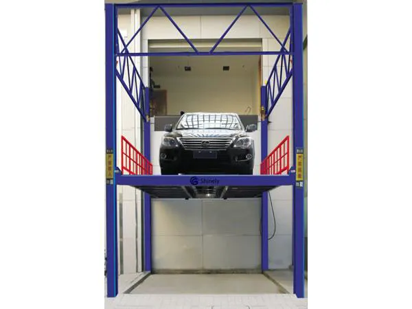 - Esta plataforma elevadora de 4 columnas dispone de un botón de operación instalado en cada piso para un control multipunto.