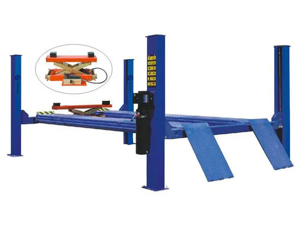 Este elevador de 4 columnas para alineación está fabricado especialmente para su aplicación con vehículos de pequeño y medio tamaño. Nuestros elevadores para alineación están equipados con 4 columnas hidráulicas con una capacidad de 4, 5.5, 8 y 20 toneladas. Además, estos elevadores para coches incorporan un cilindro hidráulico que garantiza una operación de máxima seguridad y confiabilidad.