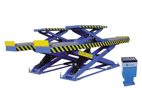 - Nuestro elevador de tijera para alineación de autos se ofrece con un sistema de deslizamiento y una estructura compacta que permite su aplicación sin necesidad de fosos.
