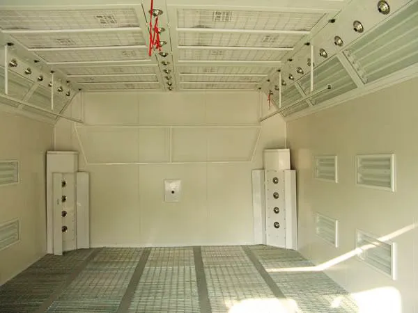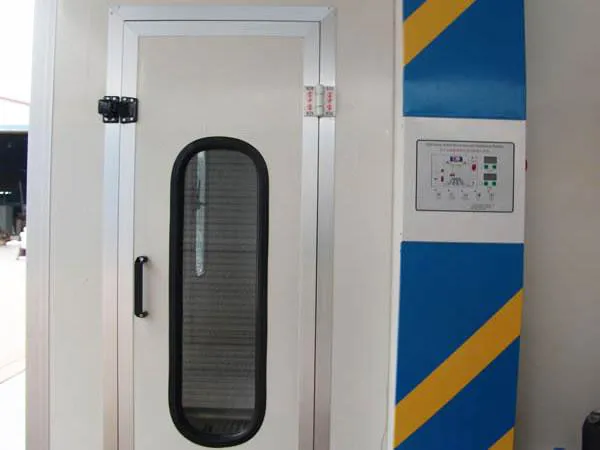 Este sistema de pintura a base de agua está equipado con 36 pulverizadores de techo con 2 ventiladores centrífugos de 1.5kW, que garantizan un preciso y eficiente proceso de pintura. Además, este sistema de pintura al agua incorpora 2 conjuntos de dispositivos de secado con una potencia de 0.18kW cada uno. Estos sistemas se controlan de forma independiente.