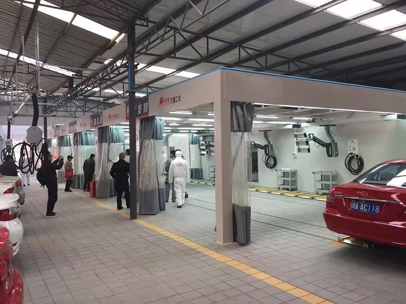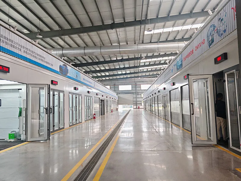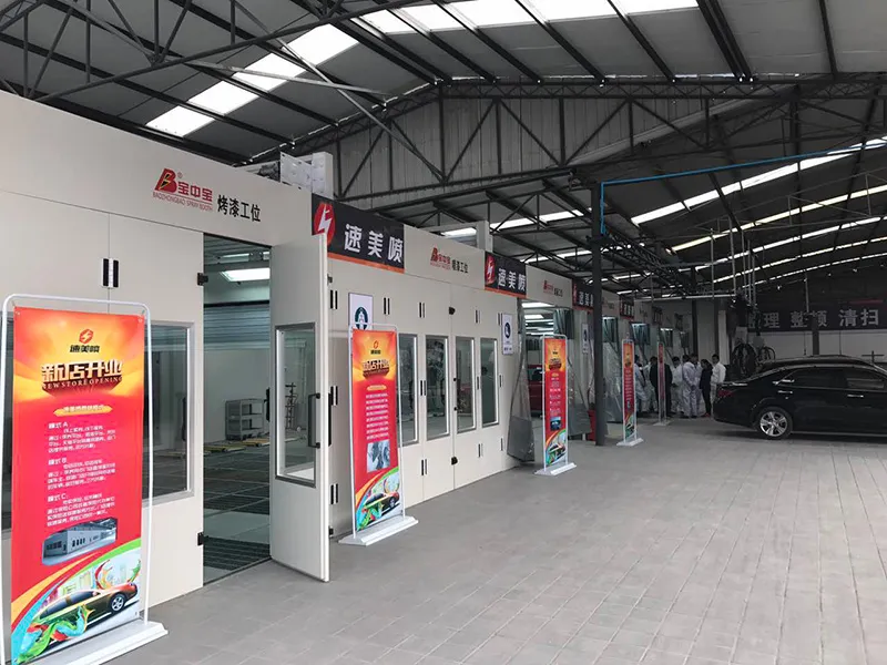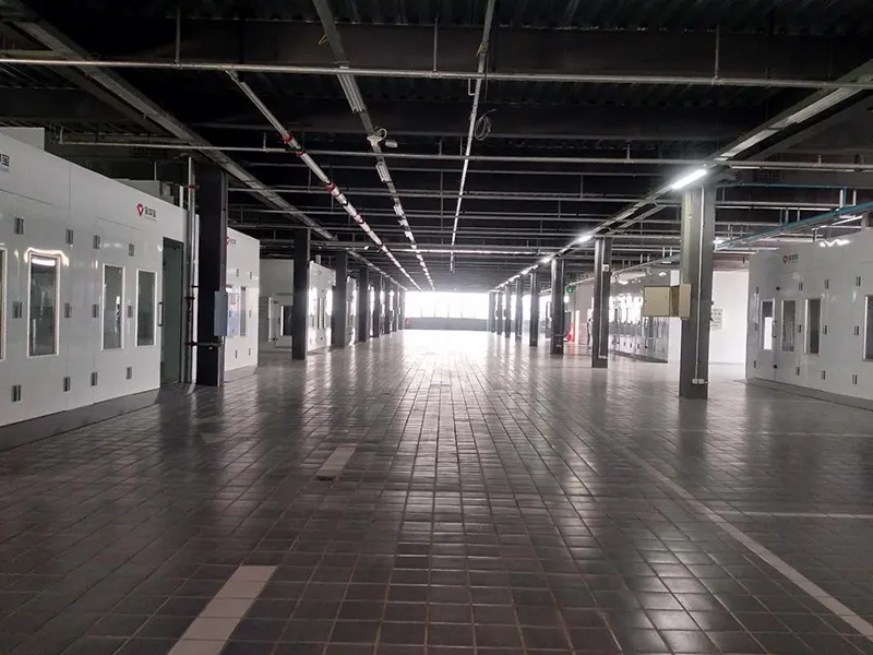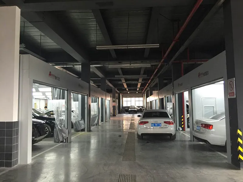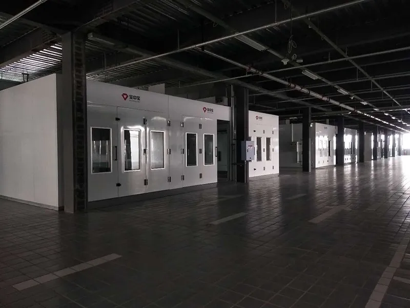 - Se ofrece con una puerta desmontable entre la zona de preparación y la cabina de pintura. El vehículo pasa de una zona de procesado a otra a través de estas puertas.
