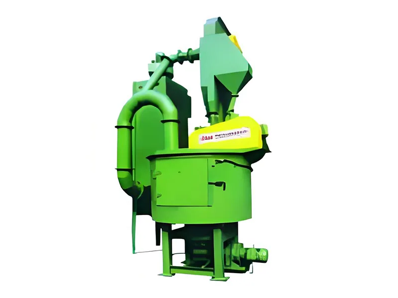 La rotación de la mesa de trabajo de esta máquina granalladora fuerza al material abrasivo a girar. La cinta transportadora sinfín desplaza la mezcla de arena a la parte inferior del elevador, que la transporta hasta el separador. Los materiales separados se acumulan en la tolva del separador.